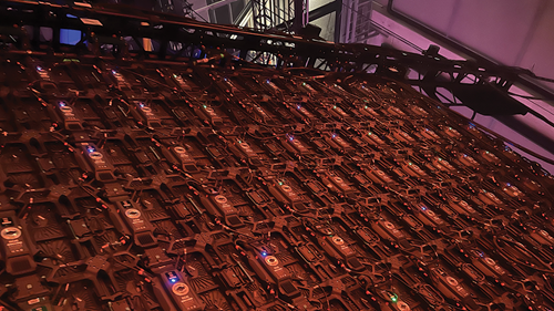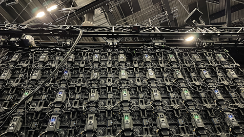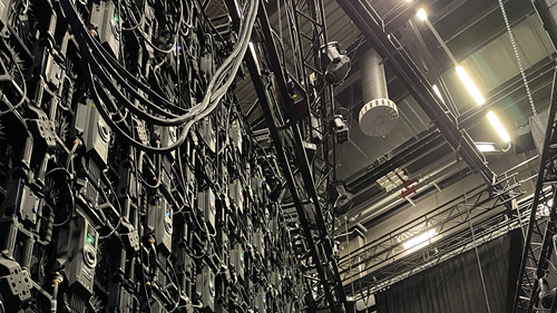 In the first system, two LED walls of 4.5 m x 5 m and one ton each were moved by two master trolleys and a total of eight slave trolleys. In the second system, two master and four slave trolleys moved the two 2.5 m x 3.5 m LED walls, each weighing 700 kg, scenically through the set.