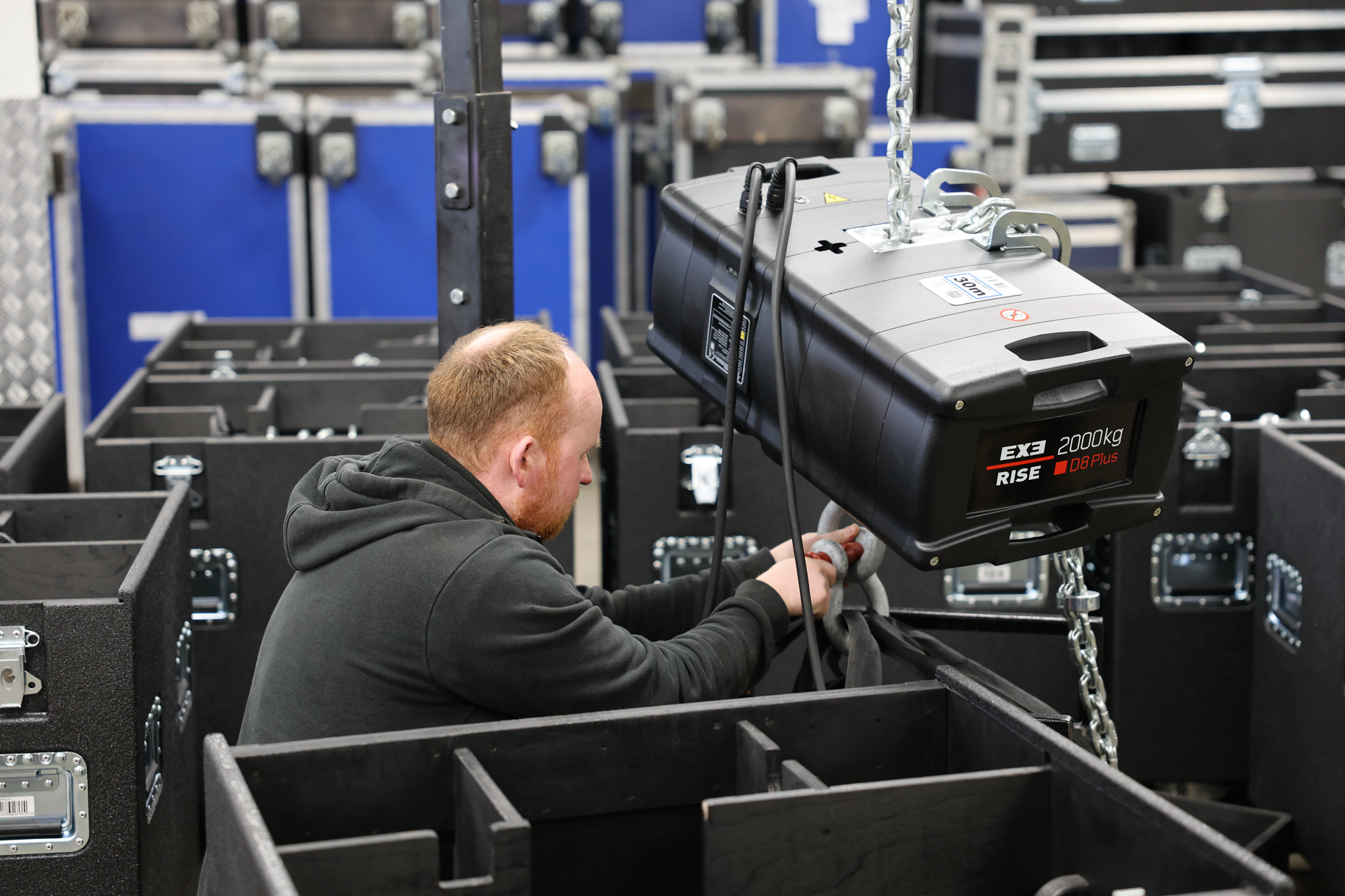 New investments include the new EXE Rise D8 + 350kg, a small body hoist for compact applications, D8+ 500kg and D8+ 1000kg hoists to add to their inventory, and the EXE Rise D8+ 2000kg Single Fall chain hoists, designed for use in heavy duty applications and in rugged touring environments. Offering a fantastic solution for more complex grid systems and the perfect partner for festivals, outdoor venues, arenas, film sets and many of the large-scale projects and events TSL are renowned for delivering globally.